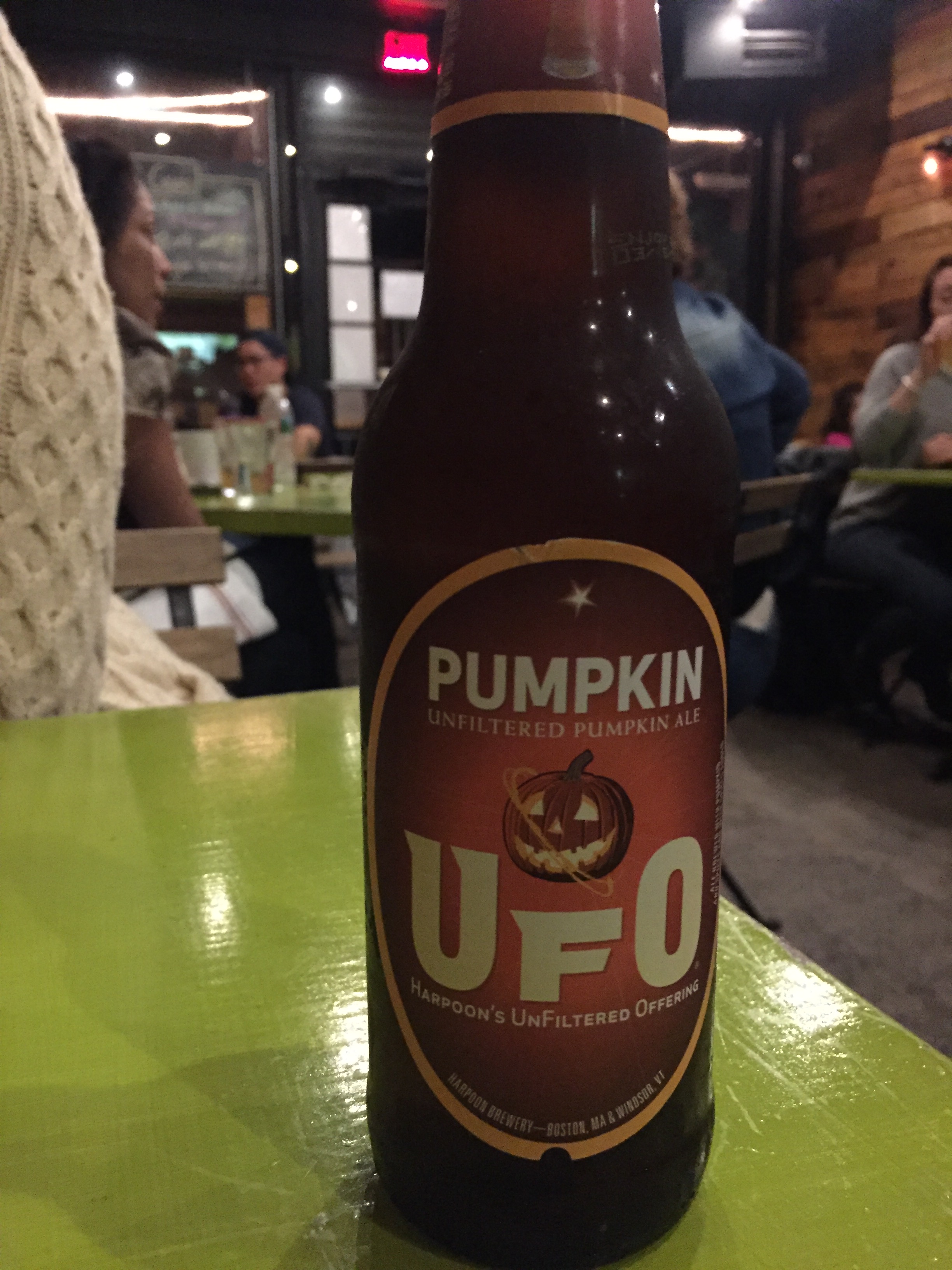 From the website: Brewed with the finest imported barley and wheat, blended with local farm-fresh whole pumpkin pureé. Wildflower honey and traditional American pumpkin pie spices such as cinnamon, allspice, nutmeg and ginger culminate to make this iconic autumn treat.